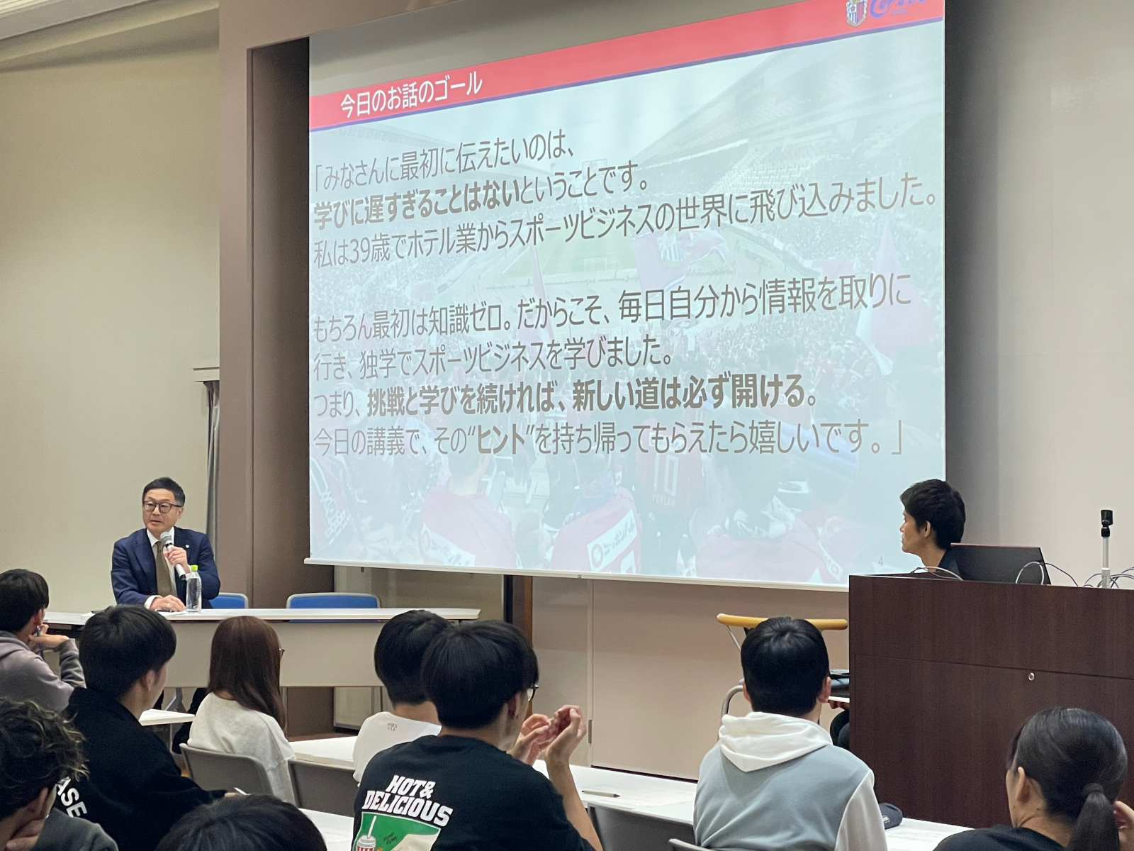 今回の特別講義は、スポーツビジネスの現場で活躍するプロフェッショナルから直接学ぶ貴重な機会となり、学生たちにとって自身のキャリアを考える大きな刺激となりました。