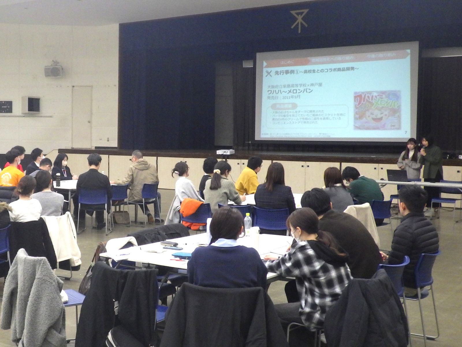 経営学部 経営学科 食ビジネスコースでは、大阪市東淀川区、YKベーキングカンパニー株式会社との産官学連携プロジェクトの一環として、東淀川区民ホールで開催された『東淀川みらい会議』に参加しました。