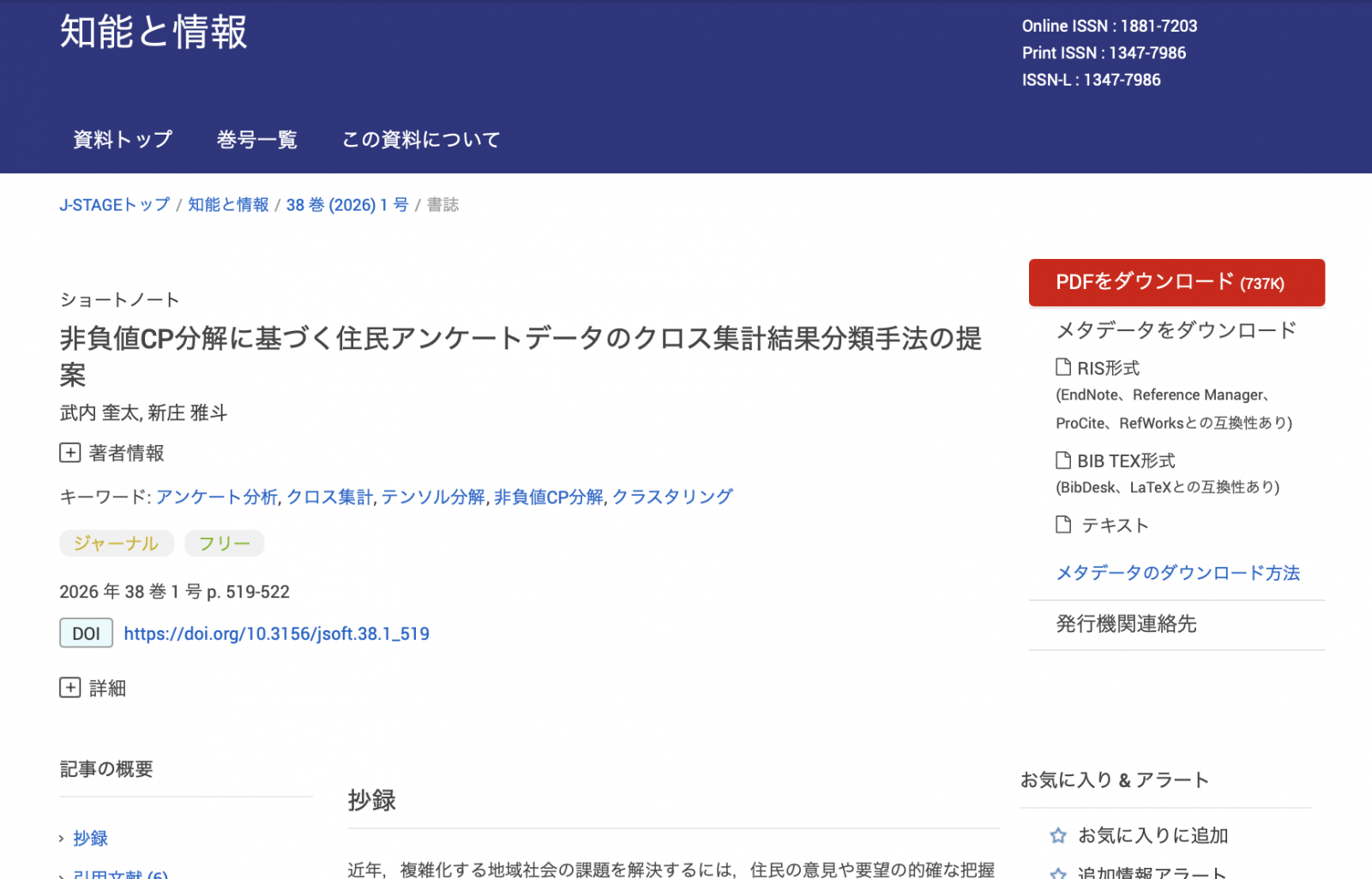 データサイエンス学部の新庄雅斗講師と京都府立大学の武内奎太氏による共同研究成果をまとめた論文が、学術誌「知能と情報」に掲載されました。